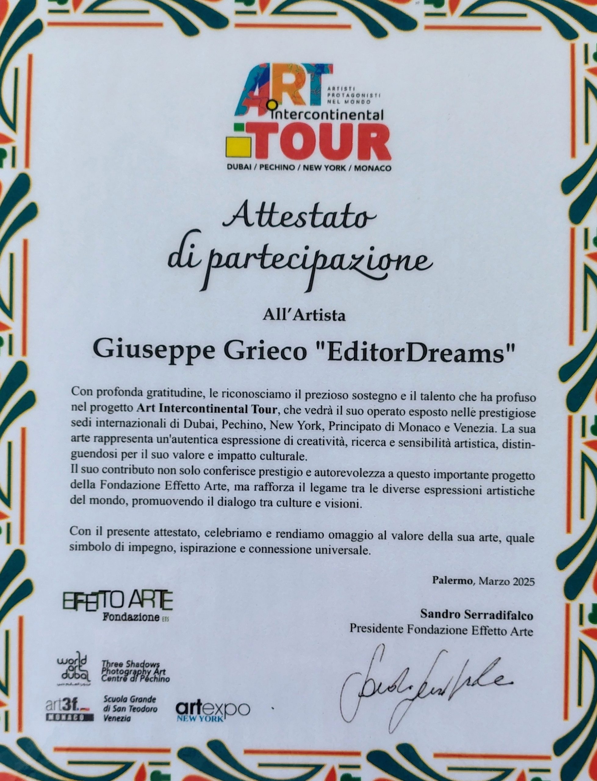 - “Ogni Universo conserva la Decifrazione della propria Matrice Creativa.” Maestro Giuseppe Grieco EditorDreams
